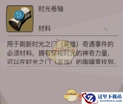 目前仅有这两种方式可以获得时光卷轴。奇遇是指:奇遇宝箱只有在英雄难度才会出现哦,打通30层额外给个箱子随机开装备。
