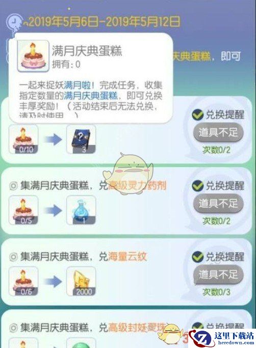 集6个满月庆典蛋糕,兑海量云纹。集5个满月庆典蛋糕,兑高级封妖灵珠。