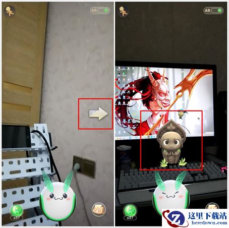 AR即在开启摄像头的情况下,小妖精会在现实场景里出现。这时,根据方向指引就能找到那只调皮的小妖精啦。