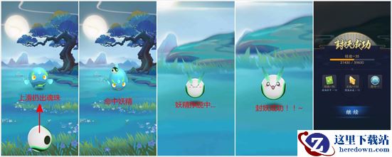 点击封妖魂珠,向上滑动扔出魂珠即可对妖精进行抓捕。但是魂珠必须在落地之前命中妖精,否则视为捕捉失败。