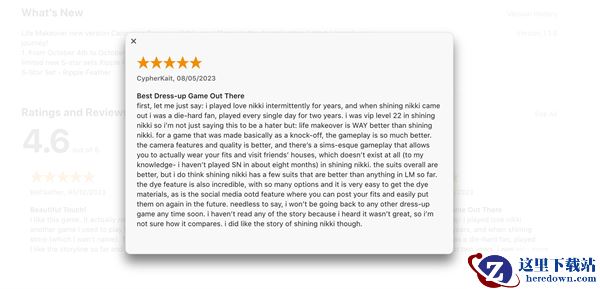 同时在美国、新加坡、马来西亚等多个国家,《以闪亮之名》都获得了玩家的一致认可和好评,也被海外玩家称之为“最棒的换装游戏”,连“之一”都没有。