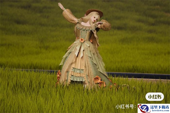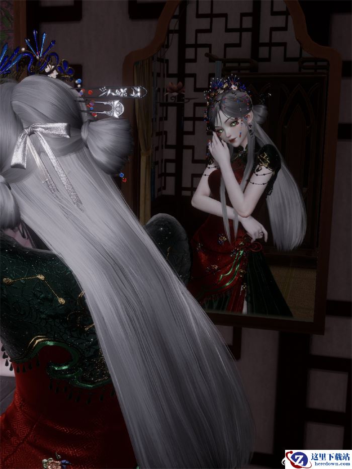 极度拟真的场景中,身穿绿色洋装的少女好似真实存在于这个世界。