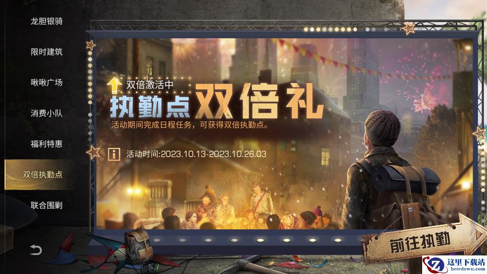 节日福利来啦!联盟为大家准备了执勤点双倍礼,10月13日-10月26日活动期间,玩家完成日程中的今日目标、日常事务、区域行动及合住日程中的任务,即可获得双倍执勤点。