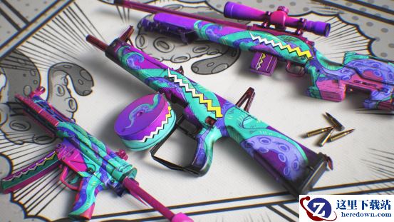 作为一个以超自然怪谈为主题的游戏,制作组在《七日世界》引入一些类型经典元素也不奇怪,【深渊低语】主要的设计语言是触手和吸盘,将神秘与恐怖的气息浓缩在迷幻风格的配色中,可以看到触手和吸盘等设计元素遍及枪身和弹鼓之上,在装弹动画中应该也会有惊喜的展现,【深渊低语】系列适配【霰弹枪·AA12】【冲锋枪·MP5】【狙击枪·AWM】三种武器。