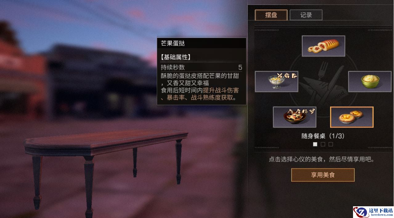 区域行动,夏尔镇,营地等多人场景都可以自由摆放餐桌,最多可以摆出15份料理!