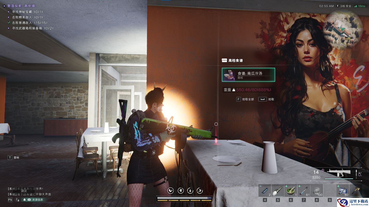 隐藏高岸镇右上方餐厅中的南瓜冷汤,饮用后将提高负重上限25,当负重高于80时移动速度提升10%,耐力消耗降低15%,这意味着在携带更多物资的同时,你能够更快地穿梭于末日废土,而不需要担心耐力的过快消耗。