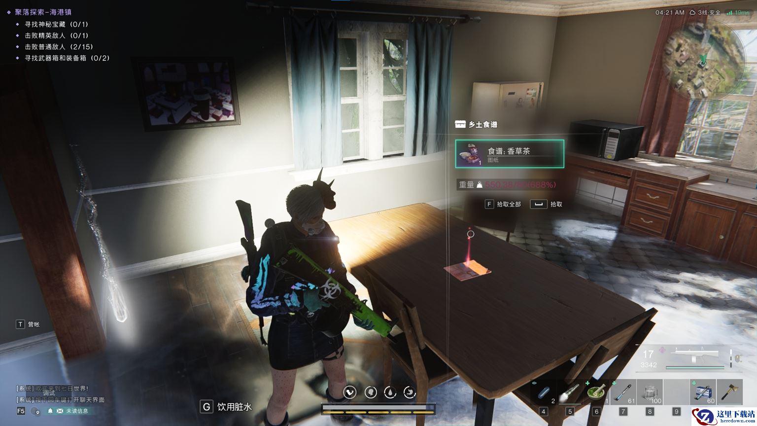 破败大陆中的心灵慰藉——香草茶,摆放在海港镇右上方的水中房屋餐桌上,它能够提升你的污染抗性20%,让你在面对末日中的恶劣环境时更加从容不迫。更值得一提的是,在脱战状态下,它还能缓慢恢复你的理智值,让你在末日的世界中保持清醒的头脑和坚定的意志。