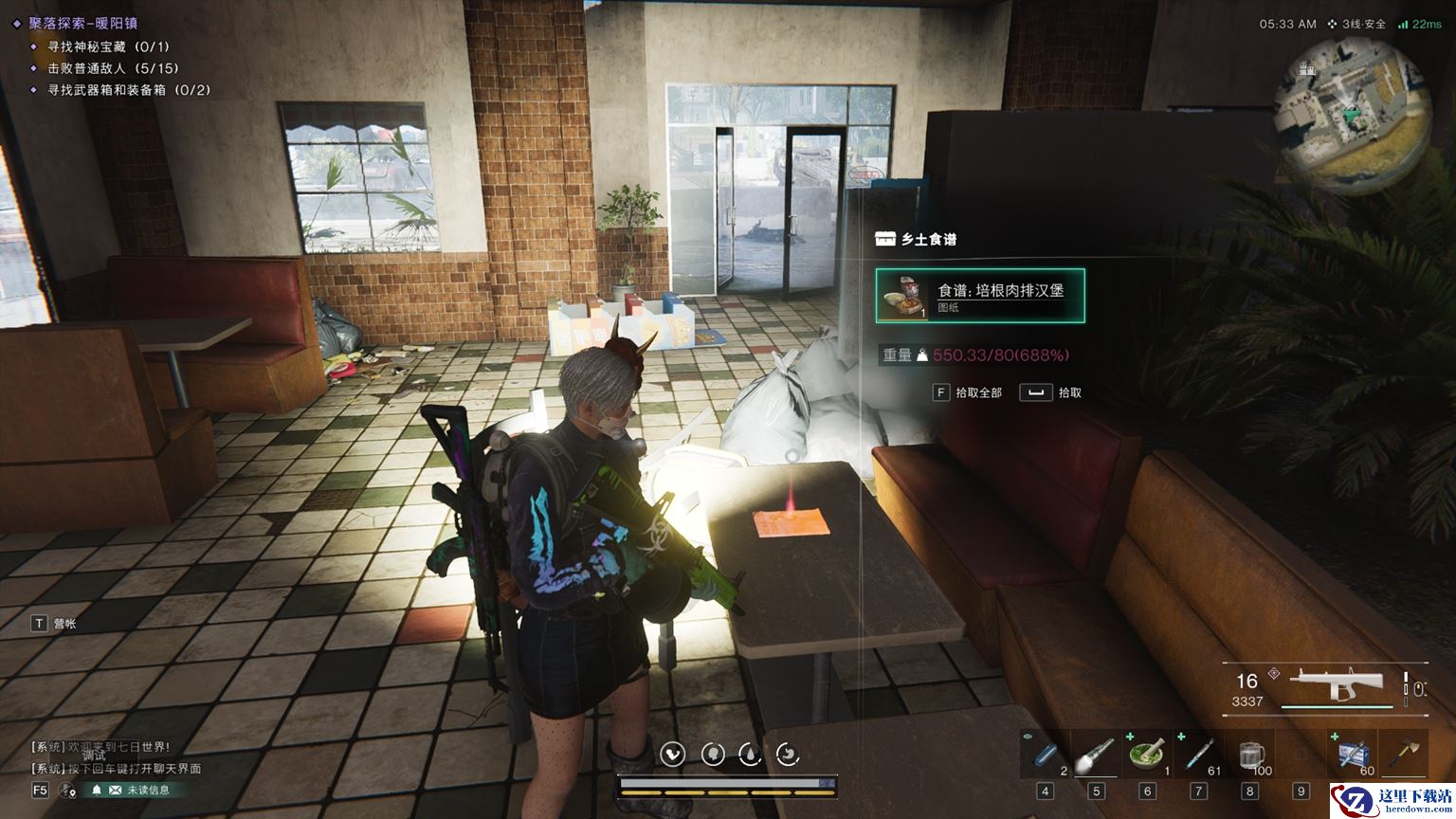 七日世界中的能量源泉——培根肉排汉堡,它位于暖阳镇右下方的废弃餐厅中,这款汉堡不仅美味诱人,更是生存的能量源泉。一旦生命值低于30%,它会立刻为你恢复所有耐力,让你在危机时刻迅速恢复战斗力。它的耐力上限增加30点的效果,可以让你在长时间的探险与战斗中保持持久耐力。尽管每次使用后需要等待40秒的冷却时间,但培根肉排汉堡无疑是你最可靠的能量补给!