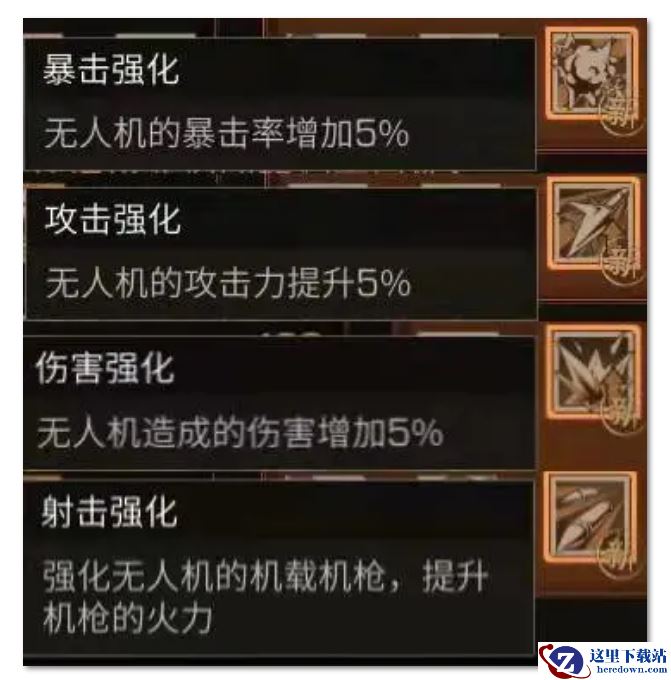 2、推荐技能为暴击强化、攻击强化、伤害强化和射击强化,这样可以最大程度提升。
