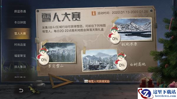 在1月13日-1月26日期间,在野外采集,战斗的区域可以获得雪团,前往指定地图找到雪人基座并堆雪人就可以获得奖励!每日20点,堆雪人进度最快的胜利地区将天降礼盒!快来用你手里的小小雪团赢得天降礼盒吧!