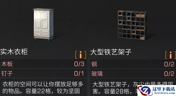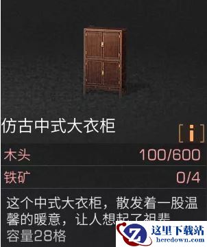 当幸存者们等级达到13级以上时,相信大部分储物柜已经较难满足日常使用需求。这时就不得不推荐制作等级达到65级后,13级庄园自动解锁的仿古中式大衣柜。作为性价比超高的储物柜,它不仅有着28格超大容量还有着材料便宜、制作时间短的优点,只需要木头以及铁矿的同时制作时间只需要十几秒。