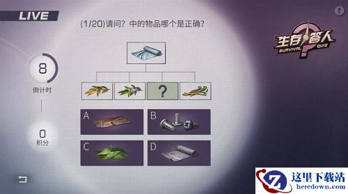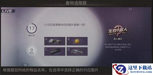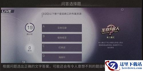 2、幸存者每次参与生存答人需要回答20道不同的题目,每题作答时间为20秒,正确解答公布时间为3秒,答对题目将会获得分数,答对时间越短,获得分数越多连续答对的幸存者还将获得额外分数哦,而生存答人中的题目共分为以下几种题型: