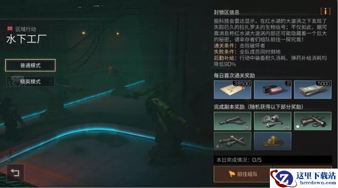 经过可靠消息称,失踪已久的拉扎罗夫就被监禁在红水湖大漩涡之下的水下工厂内,为营救拉扎罗夫,联盟规定采集等级到达110级的幸存者们,可参与水下工厂-普通模式。