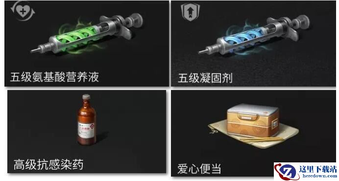 幸存者可以配置氨基酸营养液、凝固剂,持续性恢复血量和盾,