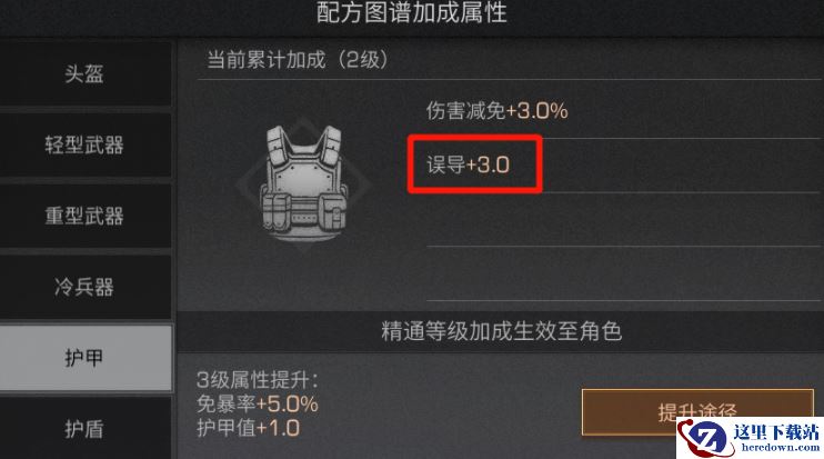 误导属性的来源有3种,分别为副武器全钢盾牌的属性继承、护甲自带的误导属性、以及护甲图谱的误导属性。