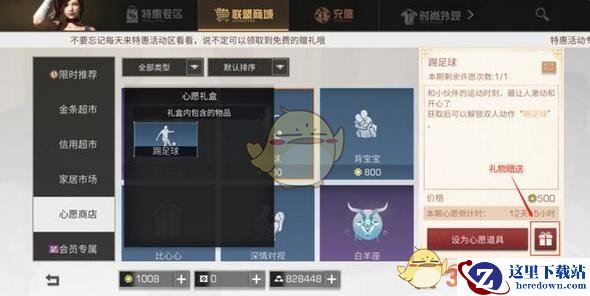 幸存者可以通过心愿商店获取最新的双人动作“踢足球”,也可以通过赠送将此双人动作送给小伙伴。