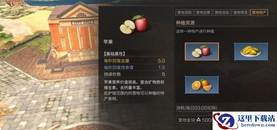 种植园位于朱石岩道入口处,幸存者可通过地图快捷传送至种植园,消耗一定营地贡献进行采摘,每日采集上限为10个。