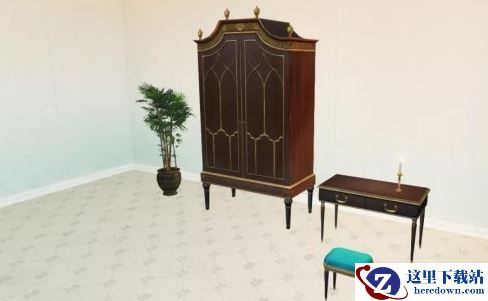 典雅的异国风情木衣柜旁摆放着与之配套的轻奢欧式梳妆台和海绿梳妆椅,浪漫白蜡烛台让整个空间多了一次情调烛光微微随着风吹而摇曳,让幸存者得以卸下一身疲惫,享受片刻的安宁。