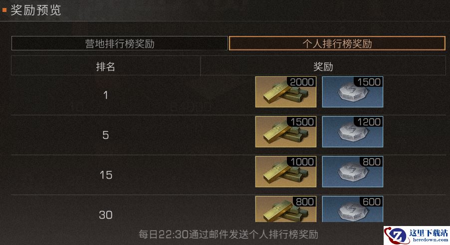 每日22:30将会结算排行榜,个人总积分前50名的玩家将会获得大量金条和技能点奖励,排名越高,奖励越好。