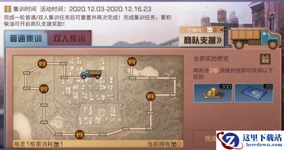 同时,完成商队集训任务可获得柴油,柴油可支援商队卡车前进,从而获得商队支援奖励,其中包括纳米塑材等。
