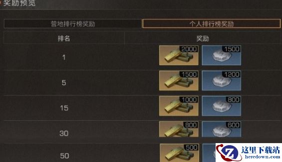 每日22:30个人总积分前50名的玩家将会通过邮件获得个人排行榜奖励。
