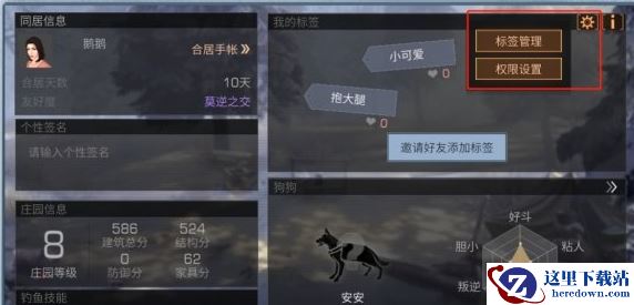 幸存者可以设置自己标签的编辑权限。只有自己设置了允许权限的玩家才可以为自己贴标签。其他玩家还可以对幸存者展示的标签进行点赞、