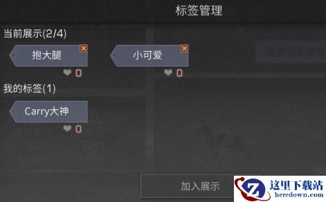 幸存者可以查看自己的标签库,并选择4个标签进行展示。