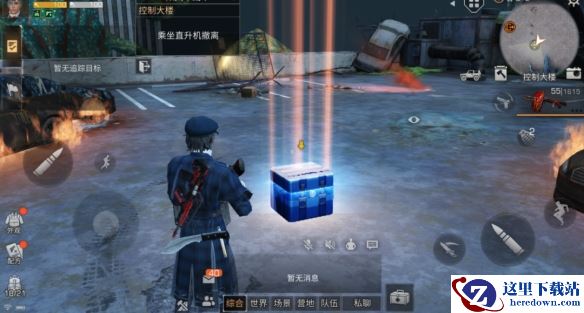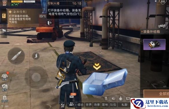 打开装备补给箱后,幸存者将获得喷气背包,利用获得的喷气背包跃上圆台。