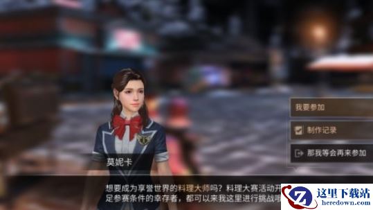 11.19-12.02每日9:00-23:50采集、制造、战斗等级达到10级的幸存者可前往营地或快乐101参加料理大赛,每日可参加2次,幸存者有60秒的挑战时间进行指定料理的食材选择。
