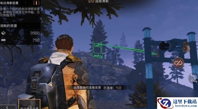 幸存者们在丘陵等地形中可以,选择建造更为便捷的电动滑索装置,幸存者建造好起点的电动滑索装置后,再放置一个终点电动滑索装置,