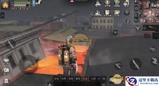 火山喷发的时候要往高区跑要不然熔浆会涨起来的,或者在高处的时候看下周边的楼顶看见疑似的就可以直接过去看看,楼顶上。