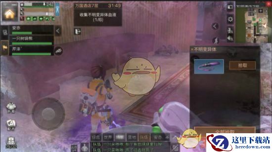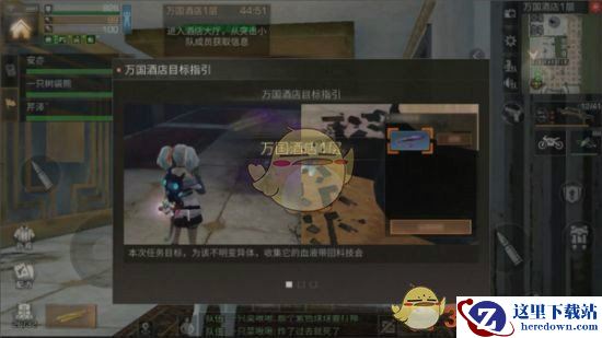 组队进入万国酒店后,会提示任务目标,本次目的就是需要搜集不明生物的血液。