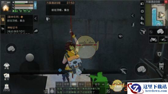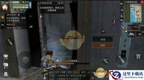 在酒店9层找到了这位突击队员对话之后,我们需要在游泳池找到绳索,