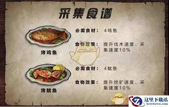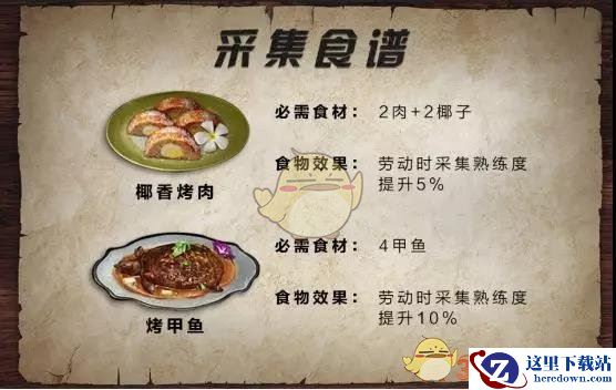 玛利亚近日在海岛发现了一些新式食谱,居然能提升,采集熟练度和采集速度,