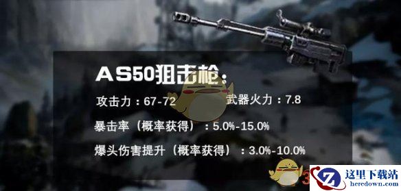 如果你是一名百步穿杨的狙击手,那么AS50狙击枪一定不能错过。选择暴击率和爆头伤害提升,千里之外可取敌军首级。这里还要提到两个成长性武器,强袭榴弹炮和95式突击步枪。