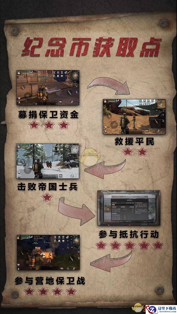 幸存者们需要与贸易联盟保卫军联手,共同对抗帝国势力,达成相关任务要求,将获得“抗击者纪念币”以及不同称号