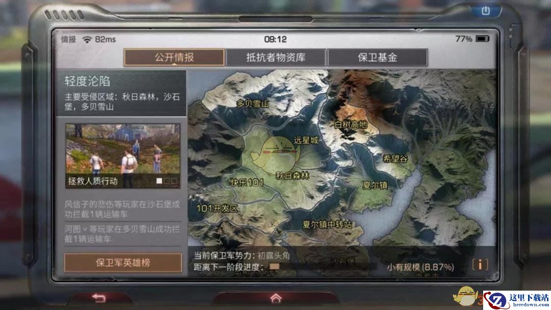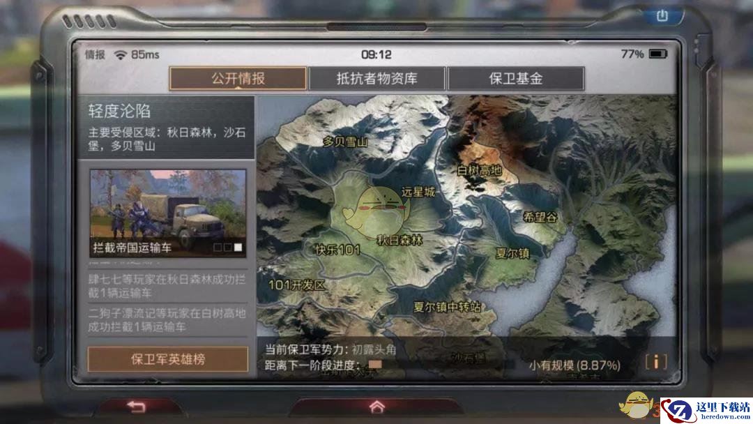 幸存者们在对抗帝国军时,可在秋日森林、沙石堡、多贝雪山、,快乐101及私人营地,向保卫基金募捐新币或者物资