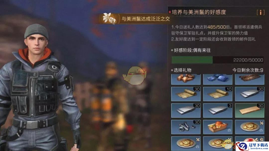 每个雇佣军在每日被送礼达到一定值后,将入驻保卫军驻扎点,提升保卫军势力,送礼物提升一个雇佣军的好感度,最多可获得70个纪念币