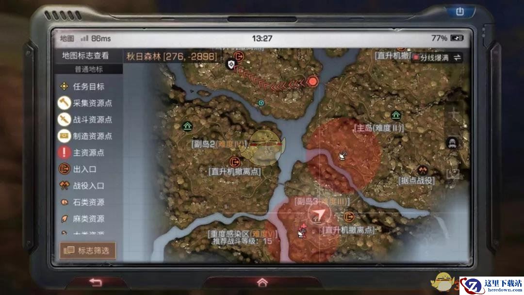打开地图可看到相关地图标识,和保卫军基地一样,也是一个小盾牌