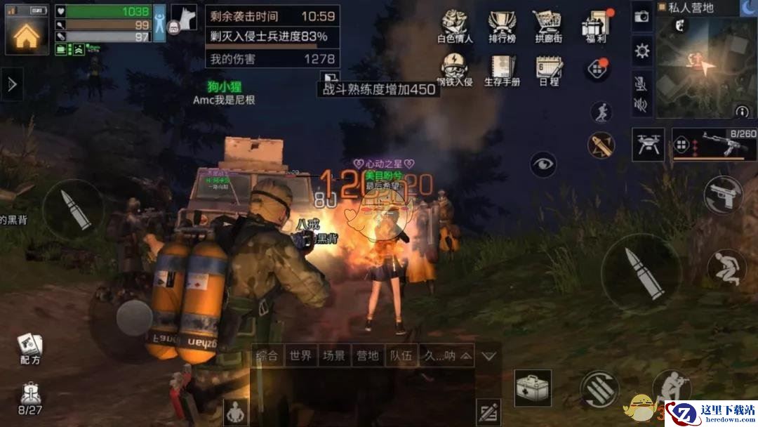 每日中午12:30,随机挑选5个活跃营地发起进攻,其它玩家可在飞机传送点处,自主选择前往被攻击营地支援,共同击退帝国士兵