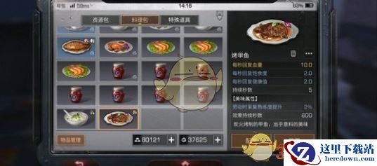 烤甲鱼:美味值4,增加劳作时8%的采集熟练度,持续600秒