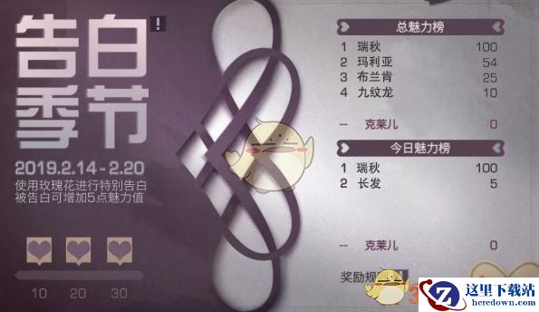 情人节期间,将根据魅力值设置魅力榜,每日魅力榜排名前列的幸存者,将会获得限时称号和对应奖励。