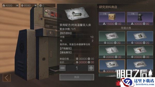 买好配方之后就能在自己庄园中的建材加工台上进行制作了,制作双人床需要的材料是10个木板+2个布。