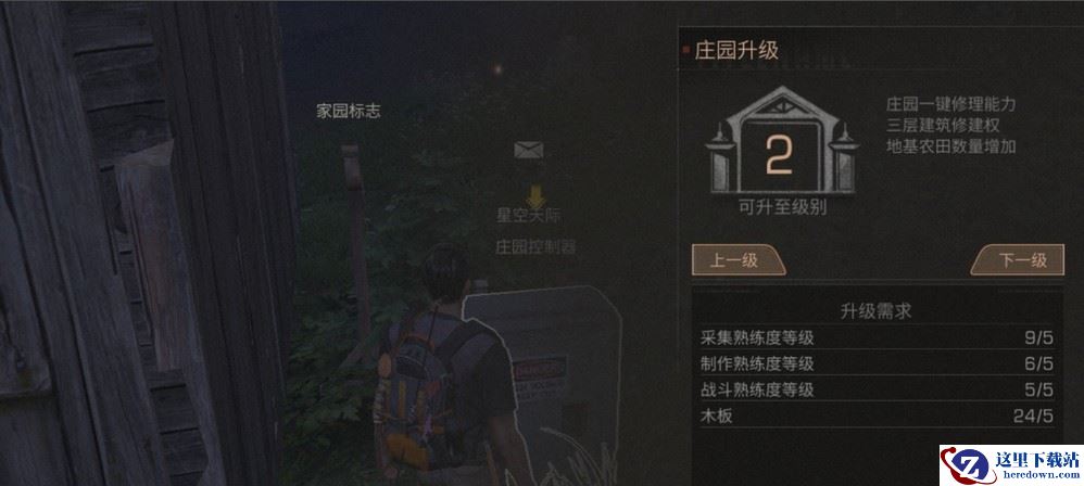 过了教程就可以获得一块地皮进行建造家园(庄园)。玩家想升级庄家,那就必须要求提升战斗等级、收集等级、制作等级,完成三种等级升级后,再返回庄园。