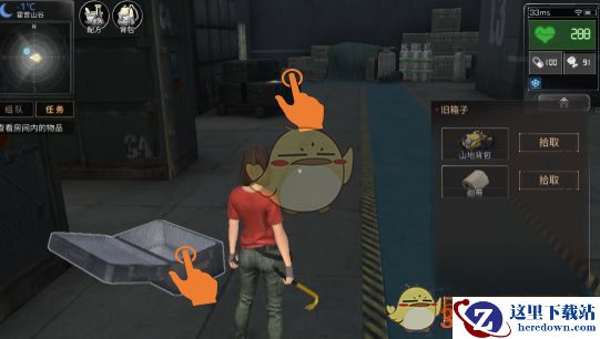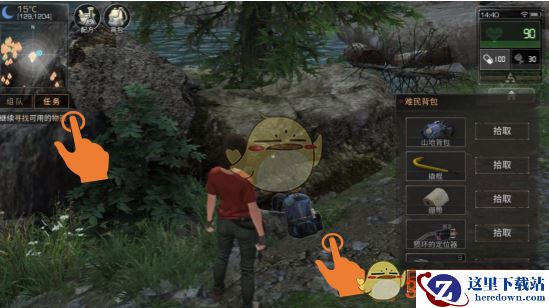 根据发光提示找到“难民背包”,全部拾取,因为里面有初期非常重要的物资。