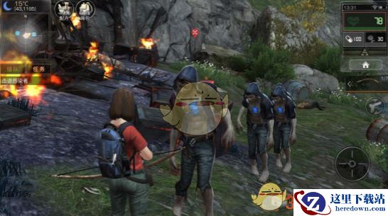 首先,在河边苏醒,发现受伤的艾瑞克,上前交谈,获悉需要找到信号塔才能获救。