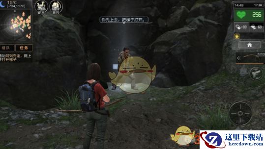 在登上梯子后会被一个NPC推下来,落地后无法用梯子,需要破坏地面的石块,进入到实验室。