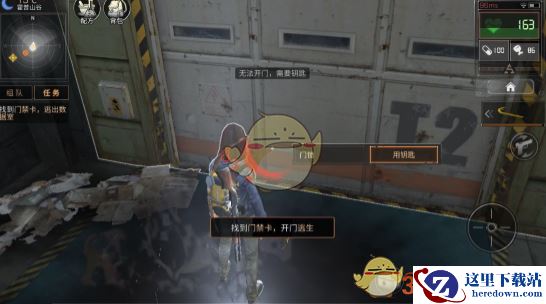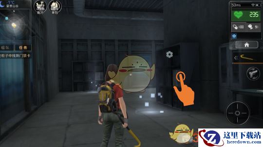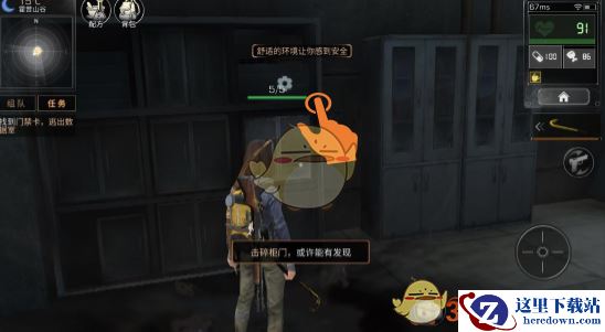继续跟着发光的提示,探索地图,走到各个有发光提示的柜子前,撬开柜子,拿到门禁卡和绷带子弹等物资。