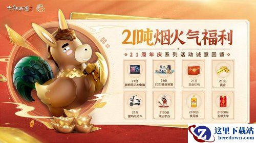 星火相传,福利不断!21周年庆,我们更将给《大话西游2》双版本玩家送上整整21吨满含烟火气的好礼,期待少侠前来领取!