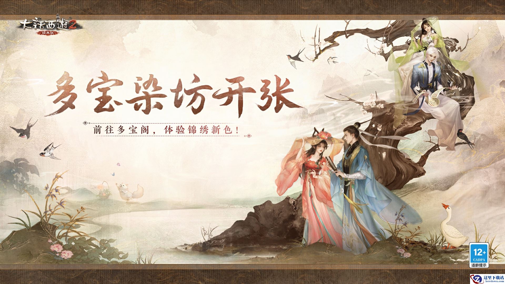 缤纷三界,灵染江湖!作为多宝阁新任掌柜金银宝的首推力作,多宝染坊将于今日(12月28日)维护后全服开放,一个崭新的多彩时代就要到来,少侠们快快前往体验灵彩染玩法,先人一步成为长安街头最靓的风景吧!
